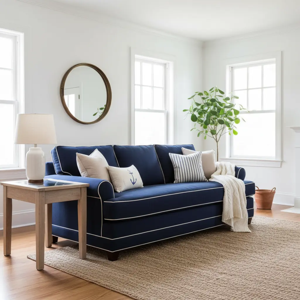 If you want a coastal look that never, ever goes out of style, you start here. This combination is the little black dress of coastal decor. It’s clean, it’s timeless, and it immediately says, “Yes, I own a sailboat, even if I really just bought the rug at Target.”