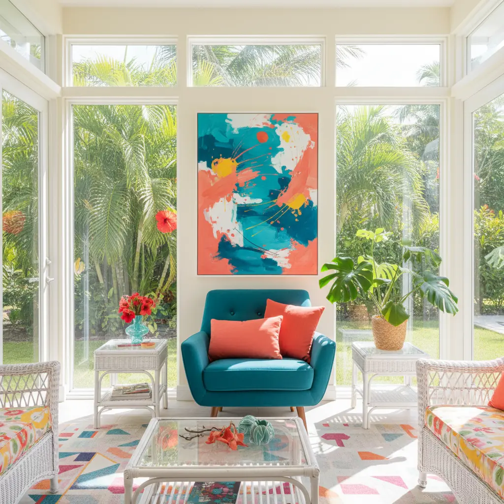If you think “coastal” only means sad beige and pale blue, you need this wake-up call. The Tropical Sunset Pop combination is vibrant, energetic, and unapologetically fun. It’s what happens when the perfect Caribbean sunset meets the clearest lagoon.