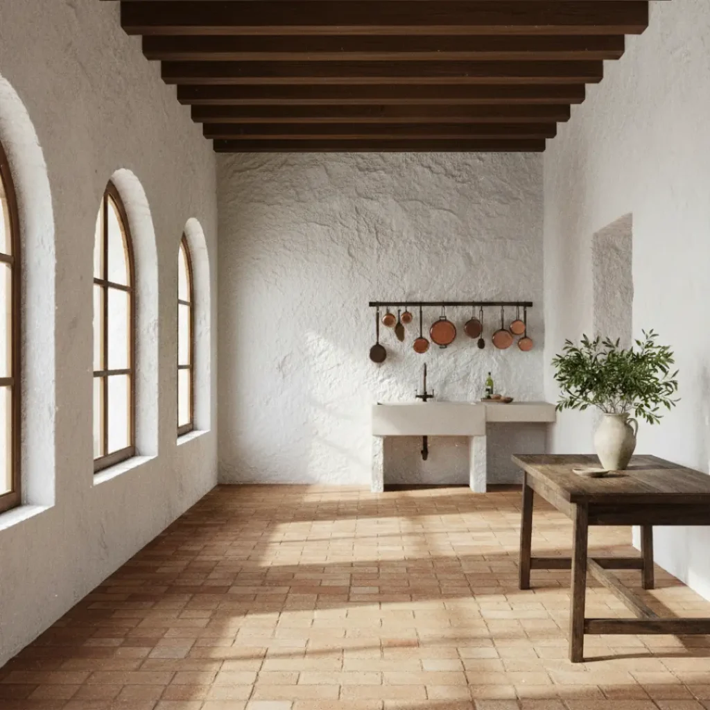 This aesthetic relies heavily on texture. You need plaster-like walls (even if it’s just textured paint) and rough-hewn wooden beams (or beam-like furniture). It’s less “sailing” and more “sipping wine on a cliffside veranda.”