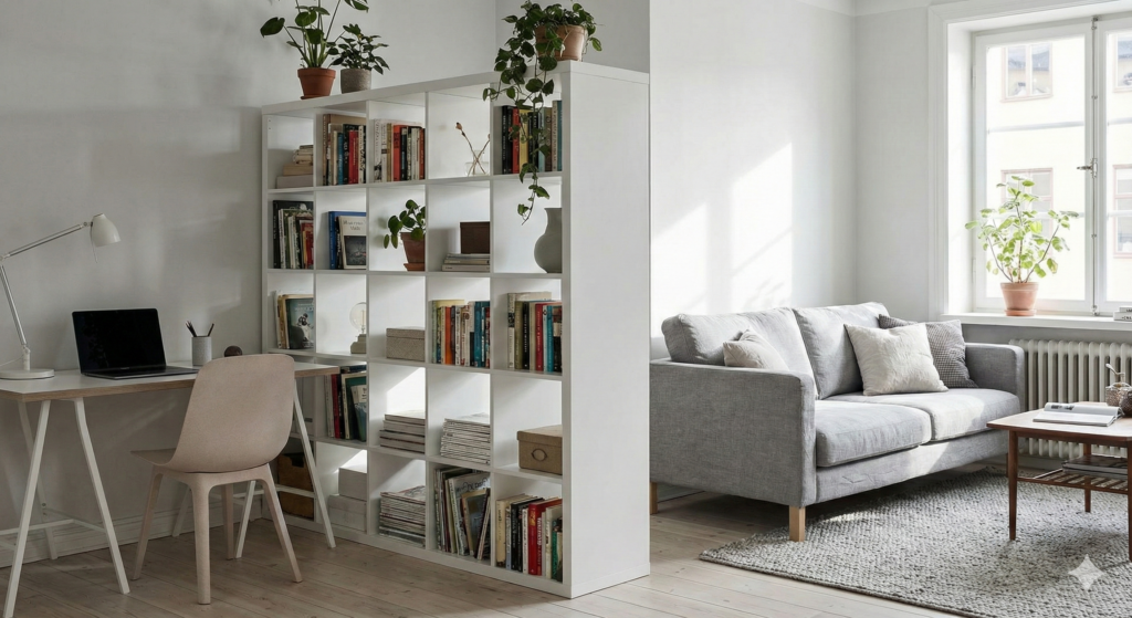 - Screens and Bookshelves: A tall, open bookshelf like the IKEA Kallax makes a great room divider.1 It lets light through but still creates a definite physical barrier.